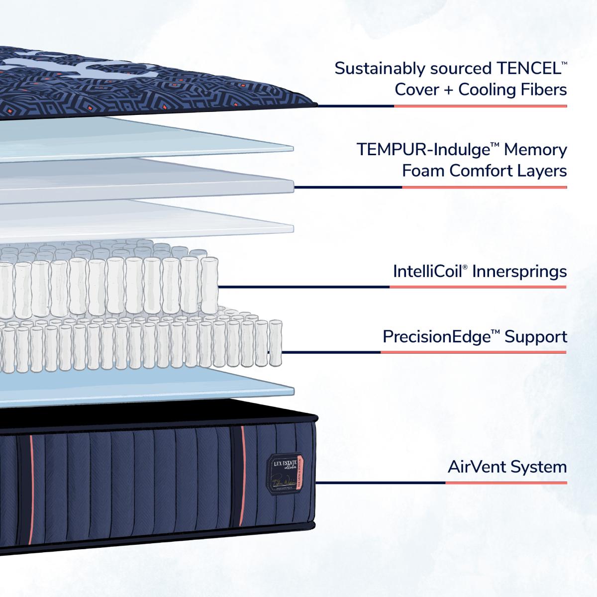 The Stearns & Foster® Lux Estate Collection provides an elevated level of comfort and support, with the added benefit of features to help keep you cool, all night long.Read More