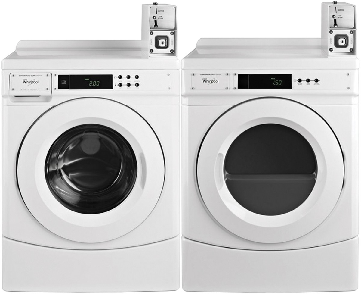 Whirlpool Commercial White Front Load Laundry Pair with a 3.1 cu. ft. capacity front load washer and a 6.7 cu. ft. front load gas dryer.Read More